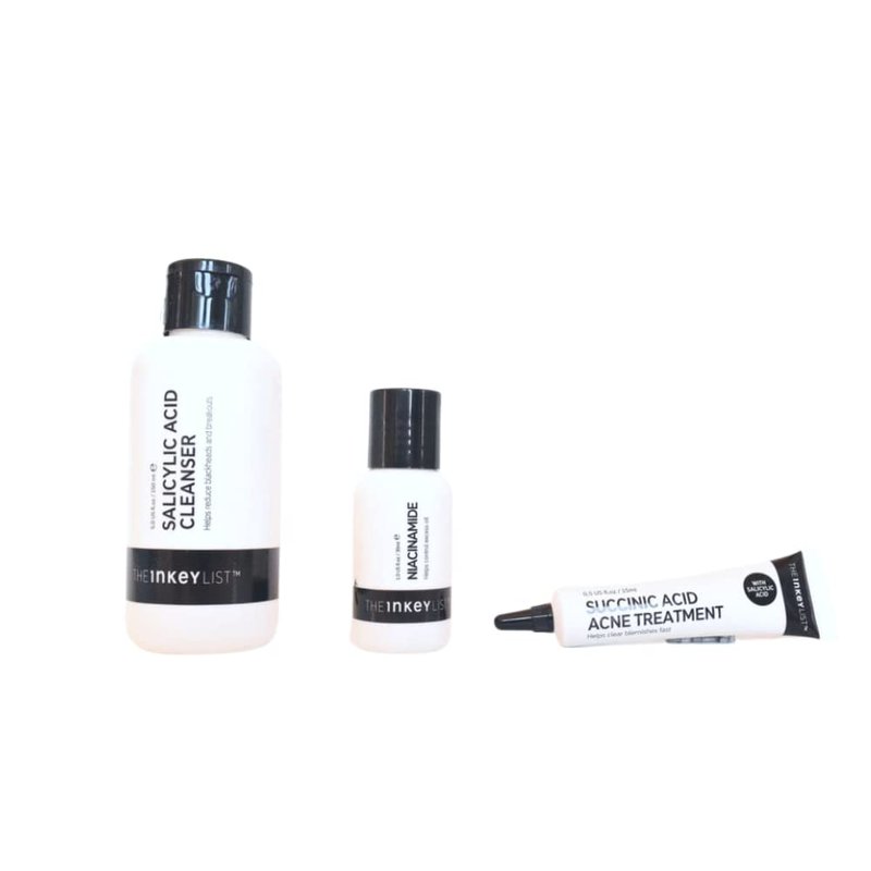 The INKEY List Back to Basics: Goodbye Acne Skincare Set:: Salicylic Acid Acne + Pore Cleanser, Niacinamide Oil Control Serum, Succinic Acid Acne Treatment