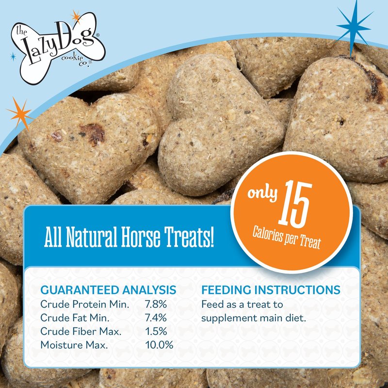- Lazy Dog Cookie Co. Horse Bitscuits – Your horse will be chomping at the bit for our tasty heart-shaped treats for horses. 100% natural 100% delicious. They’re the perfect pocket-sized horse biscuit for the riding ring, stall, trail or pasture.