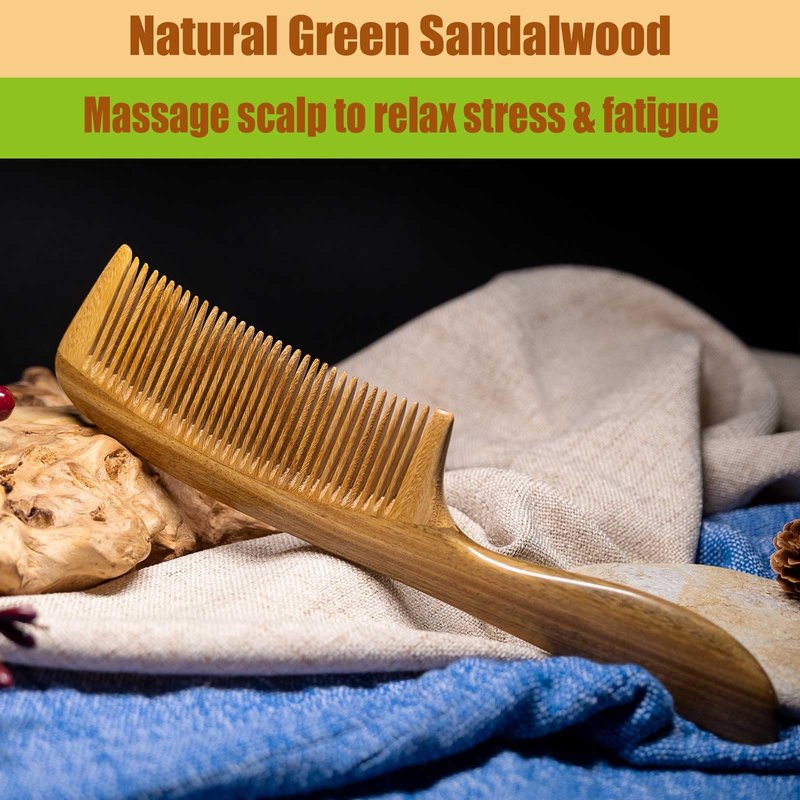- Material: sandalwood, heavy, dense, fine-grained, well polished, gentle for scalp and hair, has a mild wood fragrance, comfortable to hold in hand, multifunctional for combing hair and beard