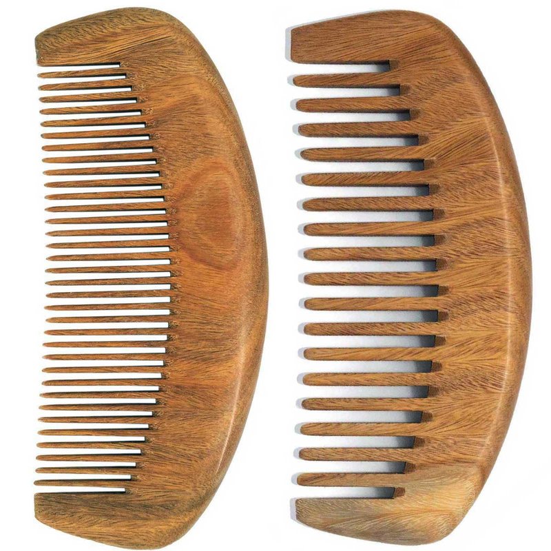 - Wide tooth wooden comb for thick hair detangling, fine tooth wood comb for combing thin hair and beard comb; With wide and fine tooth spacing, round tips and U-shaped tooth grooves, the two combs allows smoothly and gently comb through hair and beard without tangling