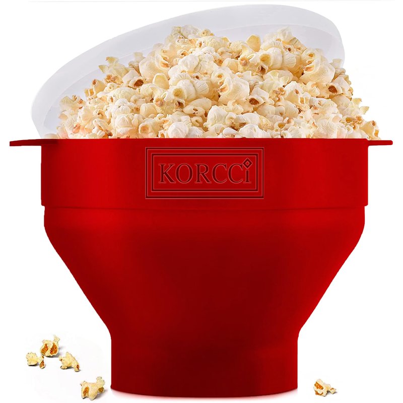 The Original Korcci Microwaveable Silicone Popcorn Popper, BPA Free Microwave Popcorn Popper, Collapsible Microwave Popcorn Maker Bowl, Use In Microwave, Dishwasher Safe (Cherry Red)