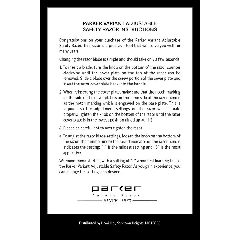 - Manufacturer: Parker Safety Razor