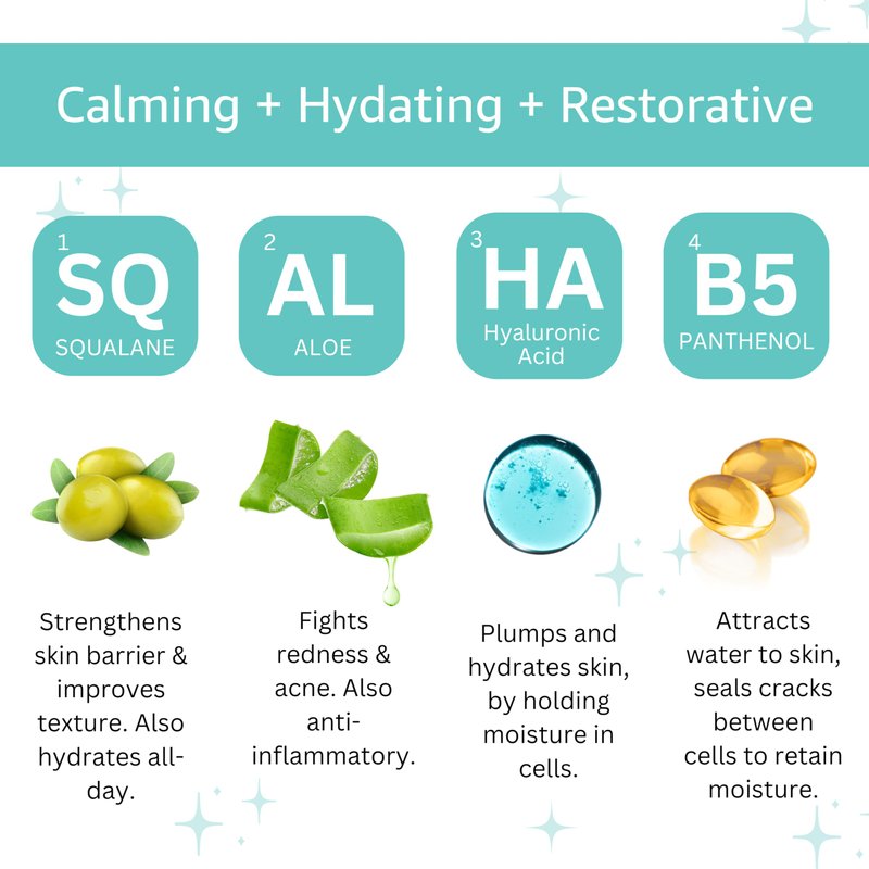 - Hydration Powerhouse: Dive into deep hydration with our silky moisturizer, enriched with Hyaluronic Acid, Squalane, and Niacinamide. It’s like a big drink of water for your skin, leaving it soft and supple—ideal for everyday rejuvenation, without the greasy feel.