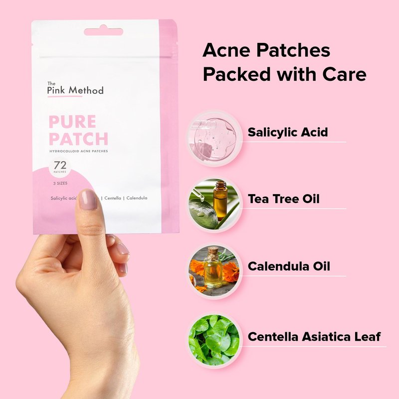 The Pink Method Pure Patch| Hydrocolloid Acne Patch| Salicylic Acid| Tea Tree| Centella| Calendula Zit Stickers| Blemish Spot cover | 3 Sizes| 72 Count
