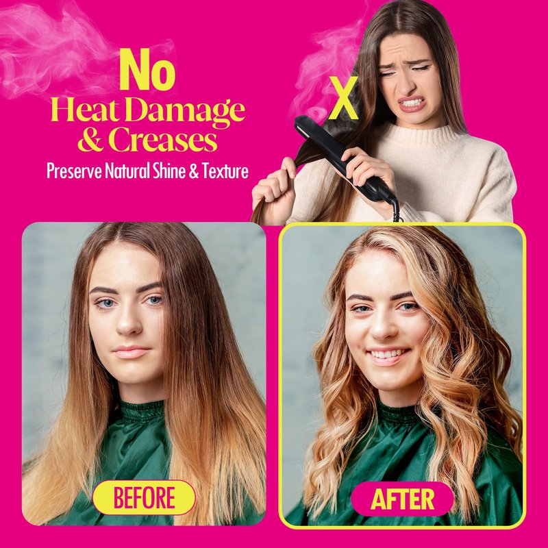 - GOODBYE TO HEAT DAMAGE & CREASES Experience worry-free styling with our satin heatless curling set featuring firm hard foam that securely holds your hair. This heatless curler offers an exceptional alternative to traditional curling irons, enabling you to create stunning, crease-free curls effortlessly while preserving your hair's natural shine and texture.