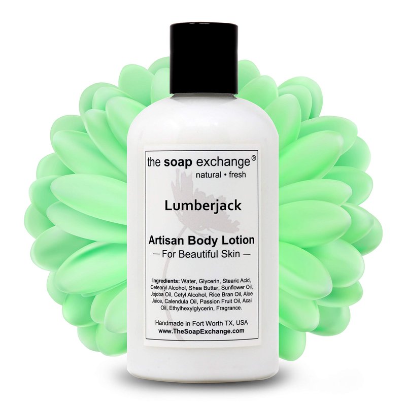 The Soap Exchange Body Lotion - Lumberjack Scent - Hand Crafted 8 fl oz / 240 ml Natural Artisan Skin Care for Hand, Face, & Body, Moisturize, Hydrate, & Protect. Made in the USA.