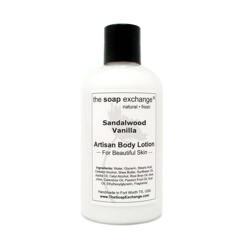 The Soap Exchange Body Lotion - Sandalwood Vanilla Scent - Hand Crafted 8 fl oz / 240 ml Natural Artisan Skin Care for Hand, Face, & Body, Moisturize, Hydrate, & Protect. Made in the USA.