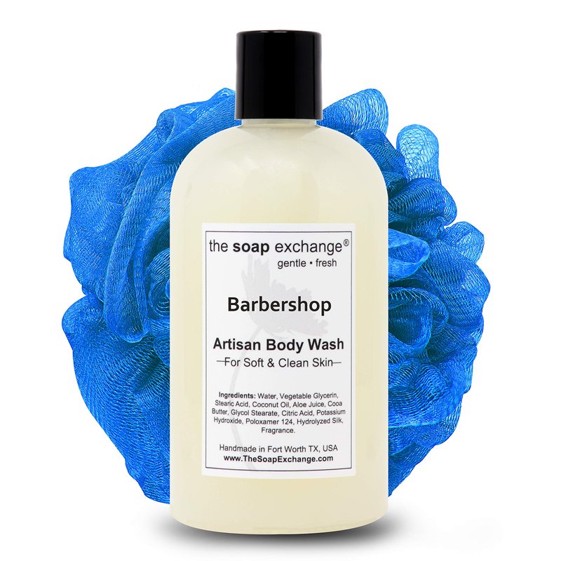 The Soap Exchange Body Wash - Barbershop Scent - Hand Crafted 12 fl oz / 354 ml Natural Artisan Liquid Soap for Hand, Face & Body, Shower Gel, Cleanse, Moisturize, & Protect. Made in the USA.