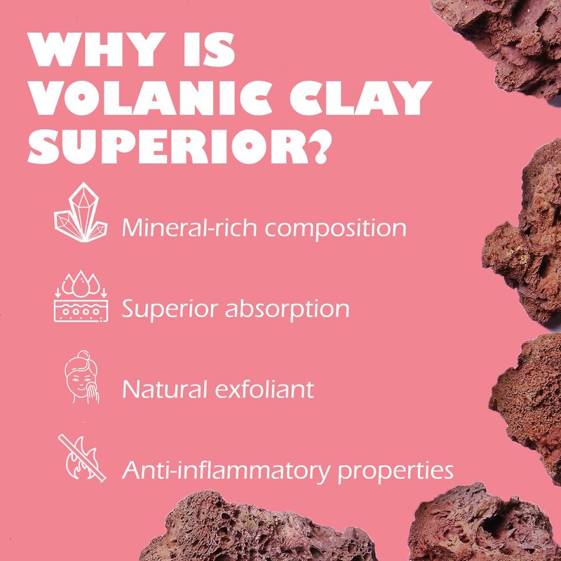 - VOLCANIC FRENCH GREEN CLAYS: Made with simple clean and natural ingredients specifically chosen for their unique benefits. Illite exfoliates dead skin cell, Montmorillonite unclogs pores, and Kaolin absorbs the excess oils of the skin. While they help clear the skin, glycerin and propanediol help keep it moisturized.