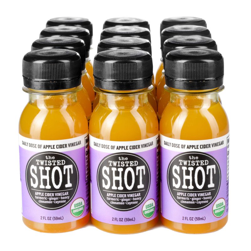 The Twisted Shot | Apple Cider Vinegar Shots with Turmeric, Ginger, Cinnamon, Honey & Cayenne | Wellness Drink | 100% USDA Certified Organic | Gut Health |Liquid, 12-Pack of 2oz Shots