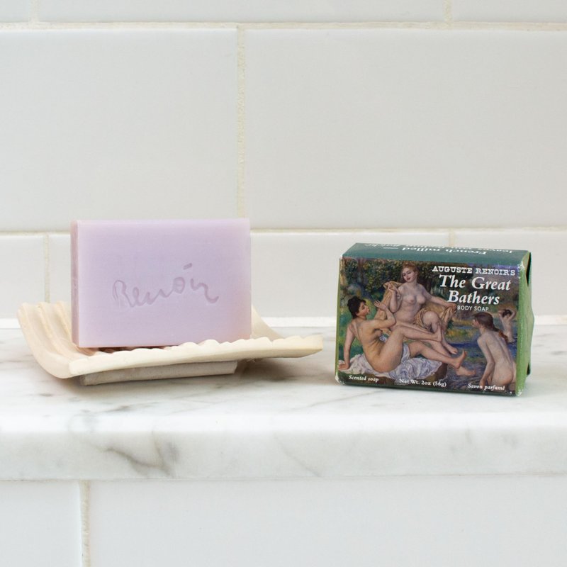 - Add a little joe de vivre to your tub with the Auguste Renoir's The Great Bathers soap.