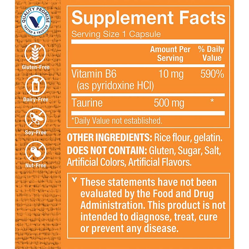 The Vitamin Shoppe Taurine 500MG, A Free Form Amino Acid, Antioxidant That Supports Cellular and Cardiovascular Health with Vitamin B6, Brain and Memory Support (100 Capsules)