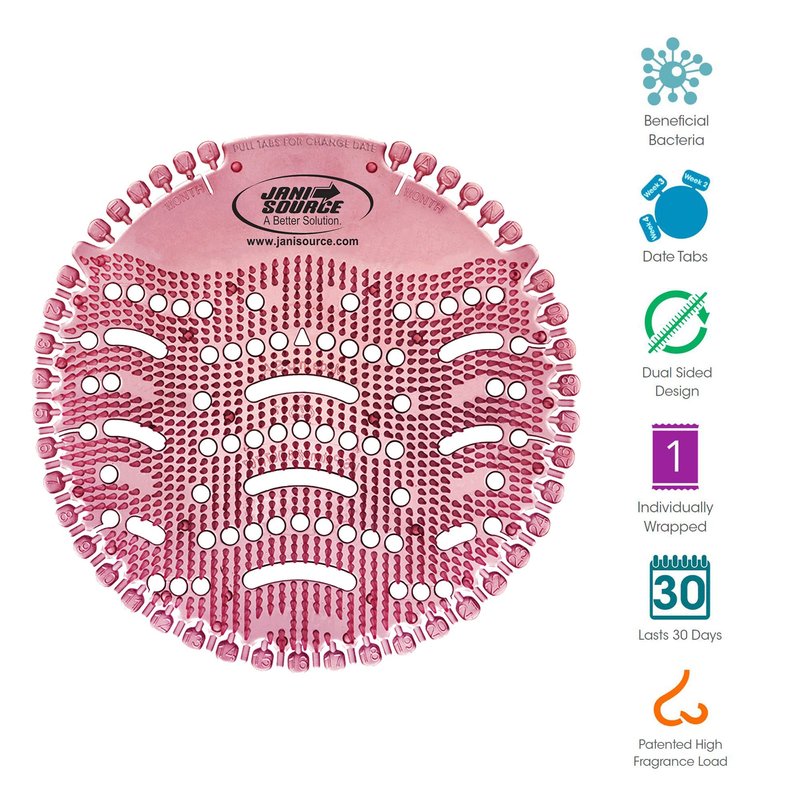 This patented urinal screen releases more than twice the active ingredients as look-alike screens over 30 days to keep the urinal and restroom smelling fresh. The Wave doesn’t' just mask, it releases optimized bacteria that consume odors. The revolutionary design features protrusions on the top that diffuse the urine stream while releasing a pleasant fragrance, cutting cleaning time in half.
