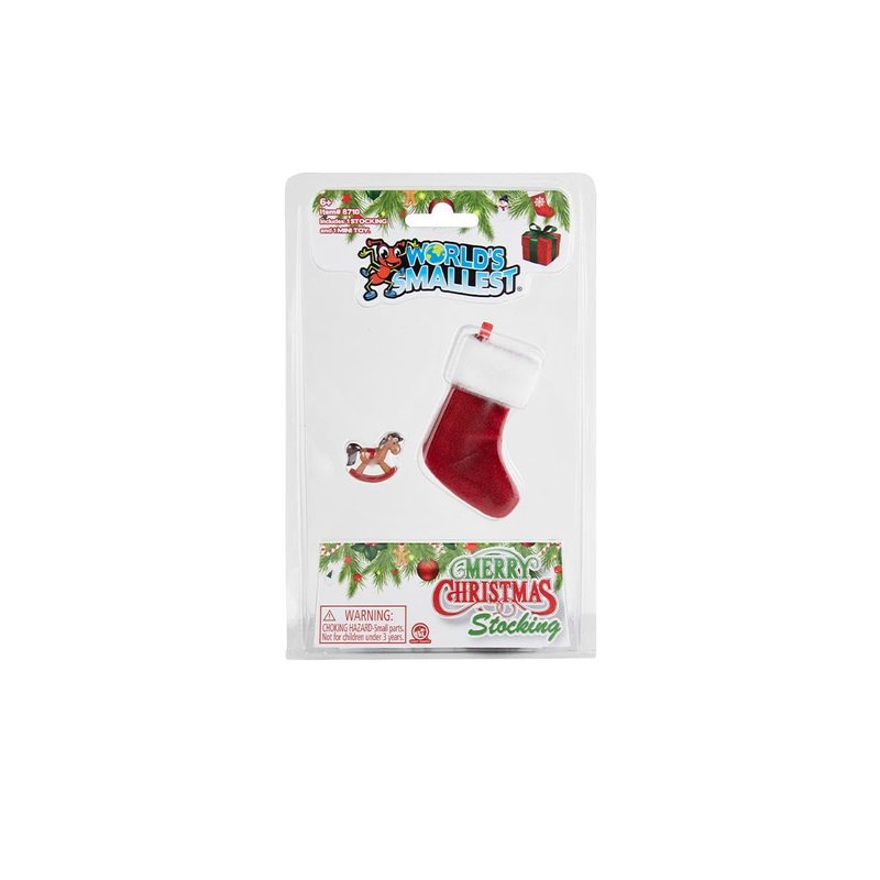 - A small stocking included fit for the world's smallest Elf on the Shelf; includes 1 of 3 toys to go in the red Christmas stocking; Teddy Bear, Rocking Horse or Bucket and Shovel