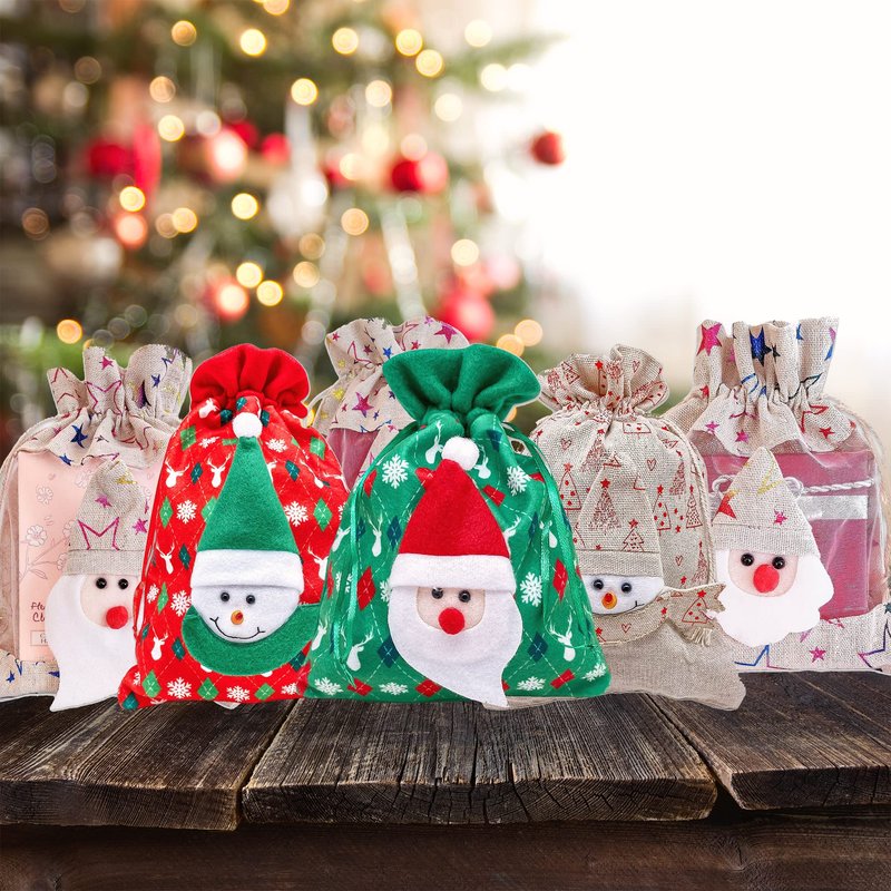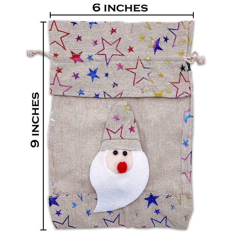 TheDisplayGuys - 6 Pack - 6x9 Gift Bags with Drawstring - Muslin Cotton Canvas (Santa Claus, Medium) for Christmas Presents, Party Favors