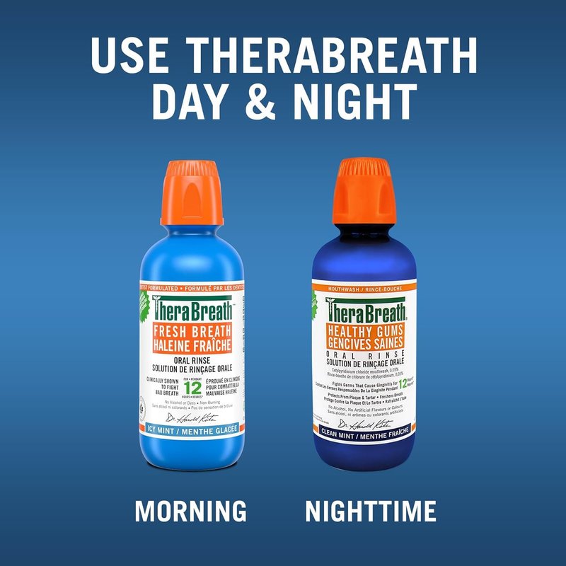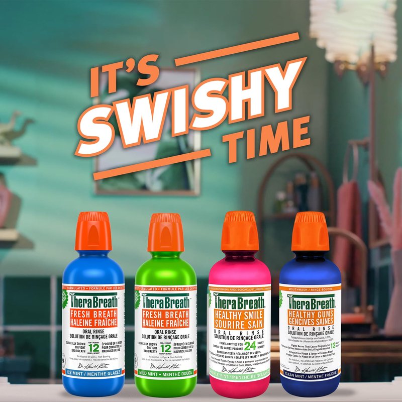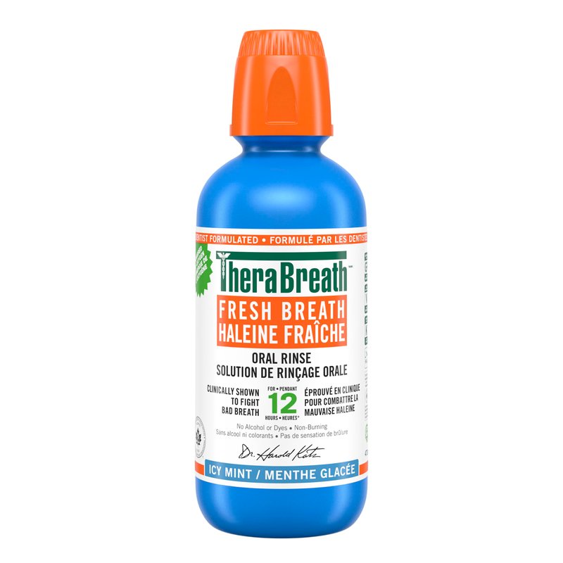 Bad breath is nothing to be ashamed of. Everyone gets it! All you need is a safe and effective way to fight it. TheraBreath Icy Mint Oral Rinse packs the same oxygenating, bad-breath fighting ingredients as our original TheraBreath Fresh Breath Oral Rinse. We’ve sweetened it with xylitol for an invigorating Icy Mint flavor. Xylitol is a natural, non-sugar sweetener that has clinically proven oral health benefits. Our TheraBreath Fresh Breath Oral Rinses have an alcohol-free formula that doesn’t burn or irritate. They contain no artificial flavors or colors and are certified kosher, vegan, and gluten-free.