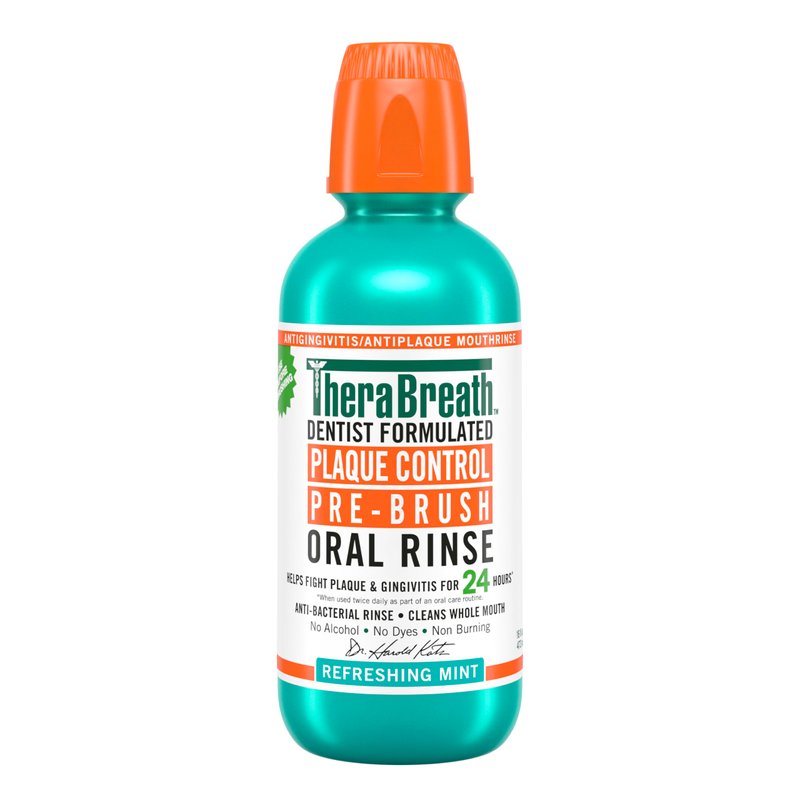 TheraBreath Plaque Control Mouthwash, Cool Mint, Pre-Brush Rinse, 16 Fl Oz