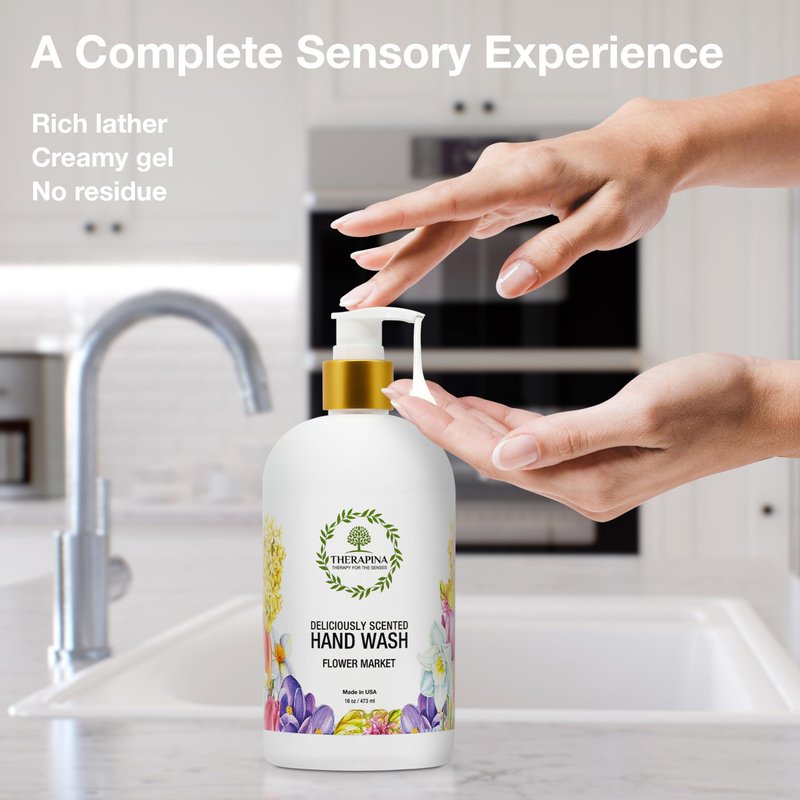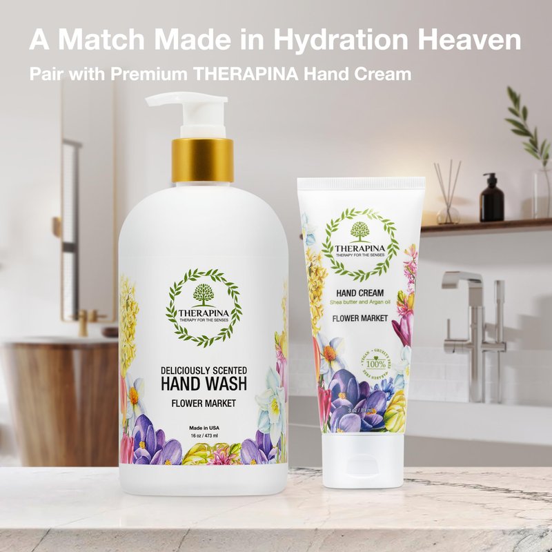 THERAPINA Aromatherapy Luxury Liquid Hand Soap – Vegan, Moisturizing Hand Wash with Aloe Vera, Botanical Oils, Flower Market Scent – Fancy Liquid Hand Soap for Bathrooms, Kitchen, More, 16 Oz.