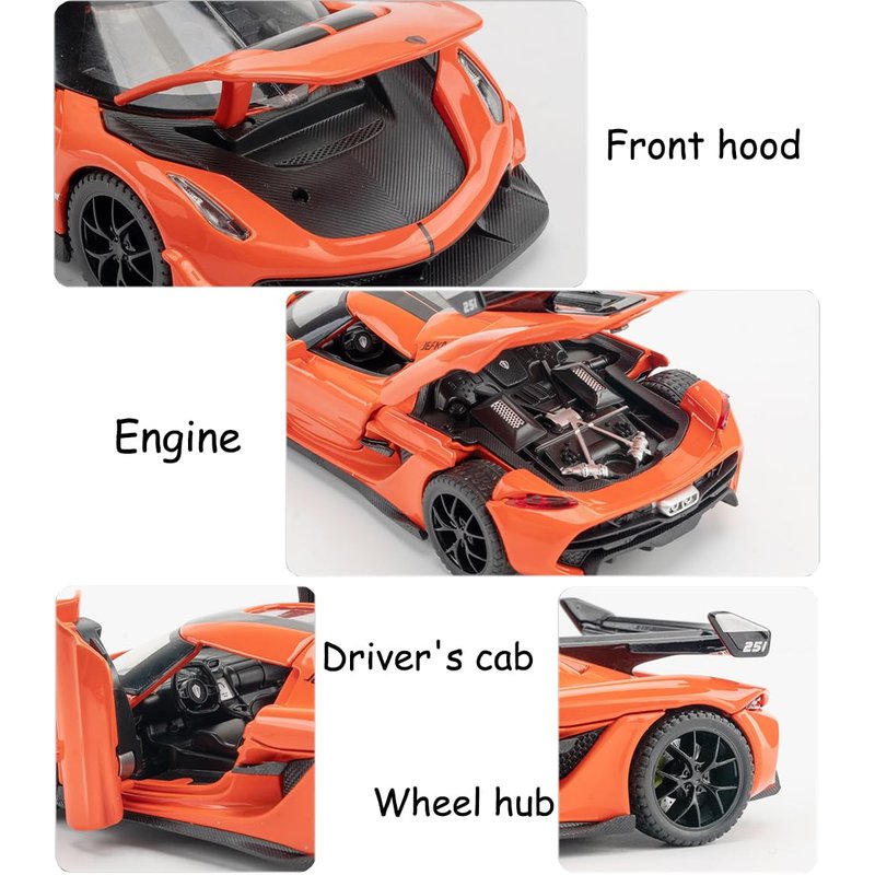 Therina Toy Cars Model Koenigsegg Jesko Orange Alloy Collectibles Die-cast Vehicles with Sound and Light