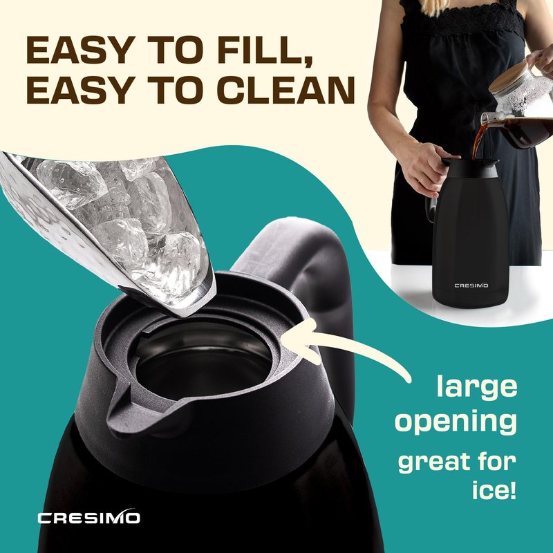 - EASY TO CLEAN THERMAL COFFEE CARAFE » The Cresimo water carafe is designed with a large mouth opening to make filling and cleaning a breeze. The easy-detachable lid is leak proof & always locks into place when closing your thermos for coffee!