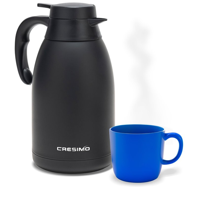 - HOT OR COLD TEA THERMOS » Cresimo's lab- tested vacuum insulation technology locks in temperature for 12 hours hot or 24 hours cold. Your new coffee carafes for keeping hot will stay hot. Hint: It's also a great hot chocolate dispenser!