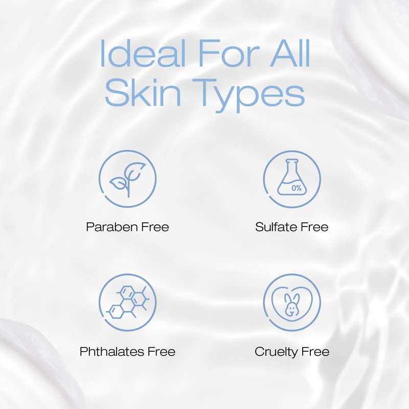 - Ideal for All Skin Types: Our refreshing cleanser is suitable for all skin types. Use morning and night. Massage in circular motions over a dampened face and neck, then rinse with warm water. Paraben free, sulfate free, and cruelty free skin cleanser.