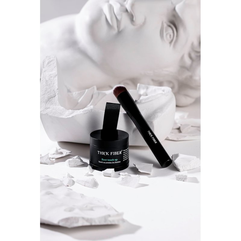 THICK FIBER Root Touch- Up powder to conceal thin Hairline. Effortlessly address thinning hair and gray roots with our expertly crafted formula. Seamlessly cover problem areas, from hairline to roots, THICK FIBER comes with a brush for easy, quick application, making bad hair days a thing of the past. Whether it's your hairline or roots, THICK FIBER Root Touch up coveres, flawlessly concealing and revealing a more vibrant look. No more worrying about those sneaky grays or sparse spots – just a natural, radiant finish. Transform your routine with this easy-to-use root touch-up powder, designed to provide instant coverage and a fuller, more vibrant hairline