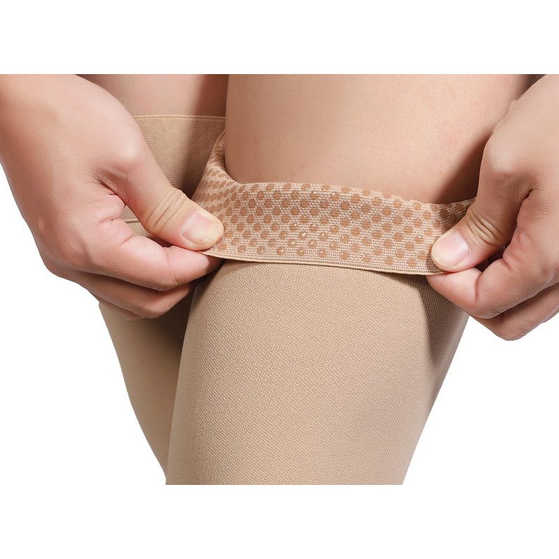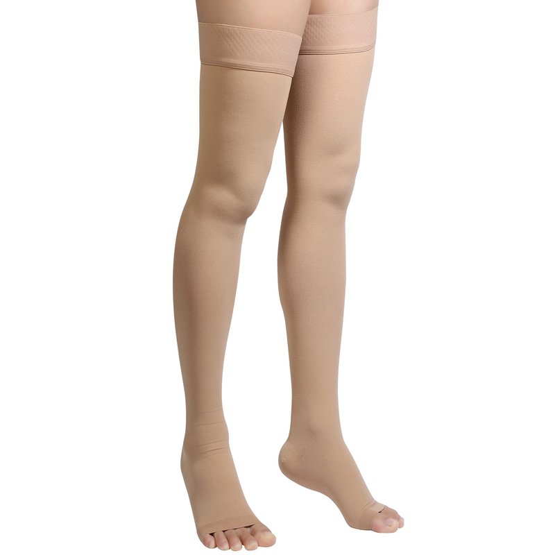 Thigh High Compression Stockings, Open Toe, Pair, Firm Support 20-30mmHg Gradient Compression Socks with Silicone Band, Unisex, Opaque, Best for Spider & Varicose Veins, Edema, Swelling, Beige XXL