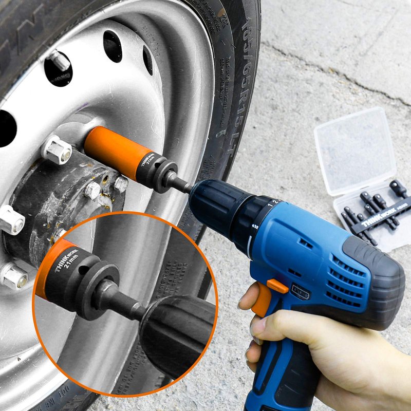 THINKWORK Impact Socket Adapter Set, 1/4" 3/8" 1/2" Drill Socket Adapter, 1/4" Hex Shank Impact Driver Socket Adapter for Cordless Drill, Impact Driver, Power Drill, Impact Drill, 9-Piece
