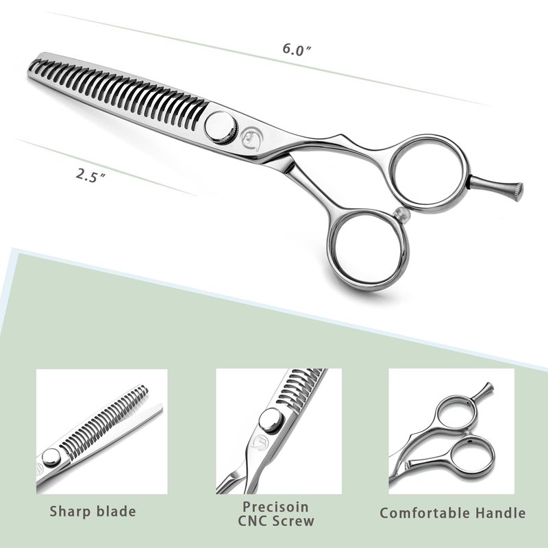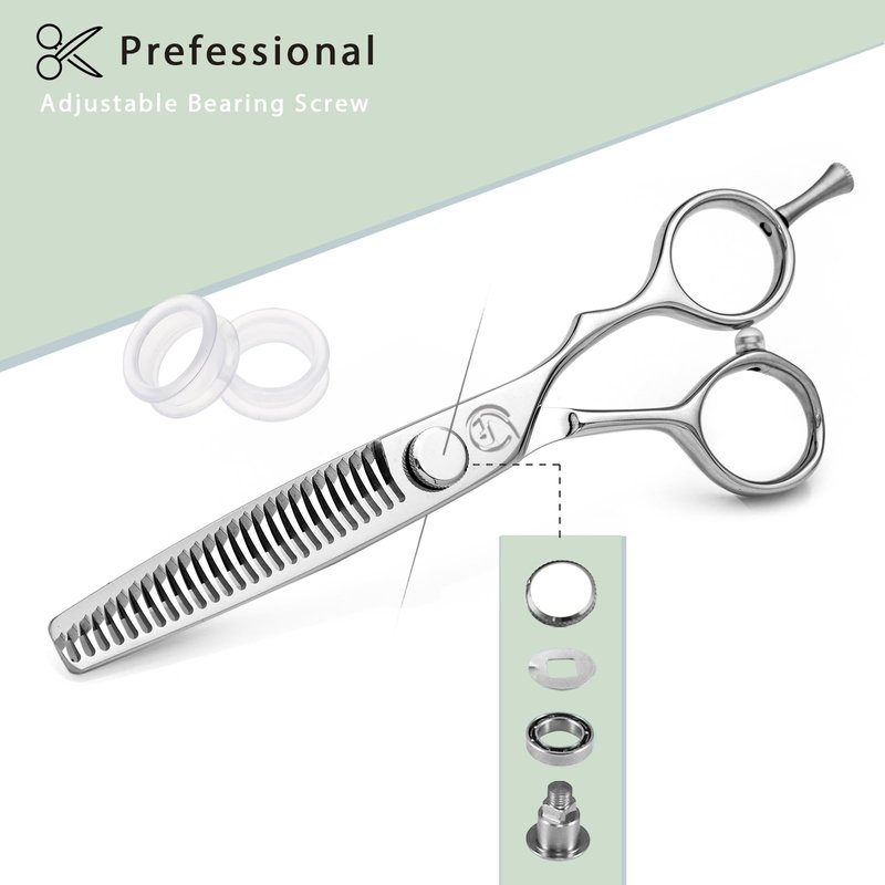- 【PREMIUM QUALITY 】 Blades of each CNC thinning scissors are specialized polishing and meticulous sharpening by craftsmen with many years of experience, A professional hair stylist to inspect and test the sharpness of barber shears. Blending feel of hand and makes the hair cutting process smoother. Moreover,Equipped with a precision bearing screw system,you can effortlessly fine-tune the tension and tightness of texturizing shears by tension adjustment screw