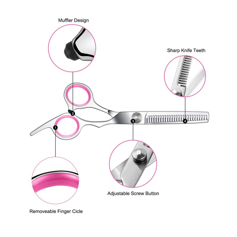 - šćAdjustable Screw&Removable Handleć- Thinning shears has an adjustable screw and removable rubber handles, you can tighten or loosen the adjuster for proper tension, or remove the rubber handle to fit the size of a finger.