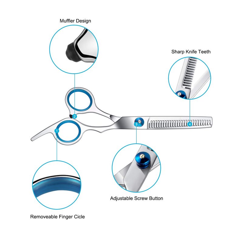 - šćAdjustable Screw&Removable Handleć- Thinning shears has an adjustable screw and removable rubber handles, you can tighten or loosen the adjuster for proper tension, or remove the rubber handle to fit the size of a finger.