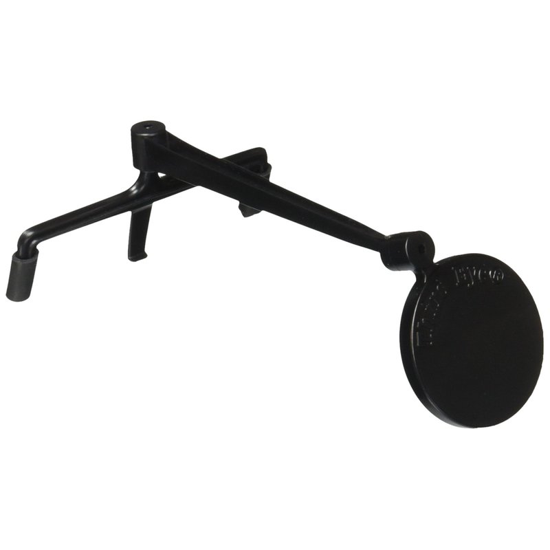 This mirror clips to the temple piece of most Eye Glasses and Dark glasses. The mirror is 1 1/8 inches in diameter. The mirror is real glass and is shatter proof.