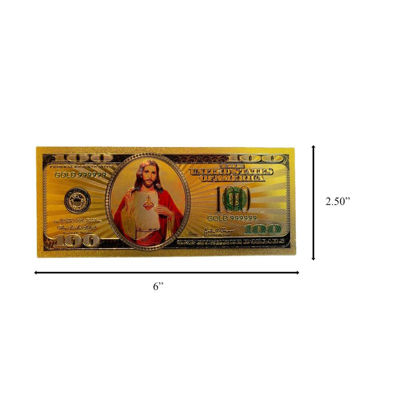 - π΅ Unique $100 Bill Design: Styled like a $100 bill, it combines traditional currency design with religious imagery for a unique collectible.