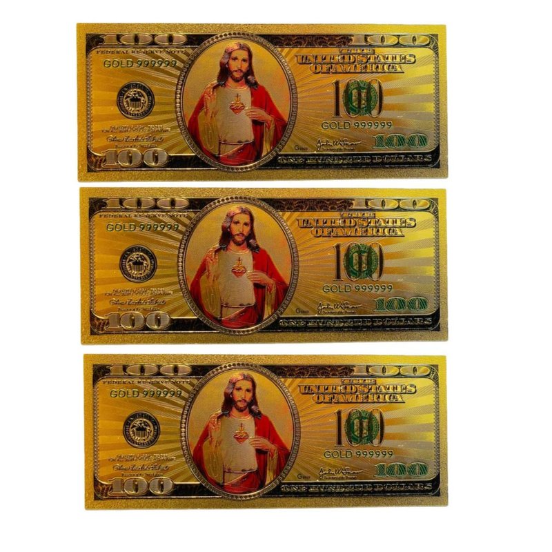 Three Pack Jesus Christ Image in One Hundred Dollars 24k Gold Plated Bill Collectible Banknotes for Decoration