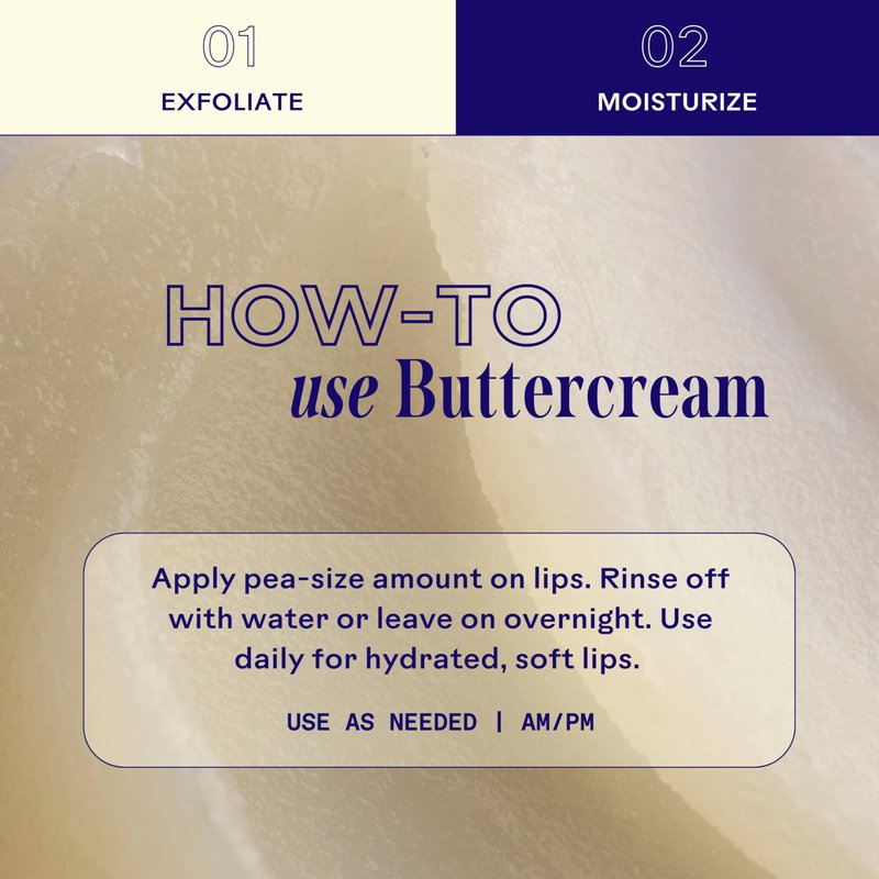 - BUTTERCREAM LIP MASK: Offering soothing relief and protection for damaged lips, this everyday Shea Butter lip balm leaves skin smooth, soft and supple. The rich formula is intensely moisturizing and revitalizing on chapped and peeling lips.