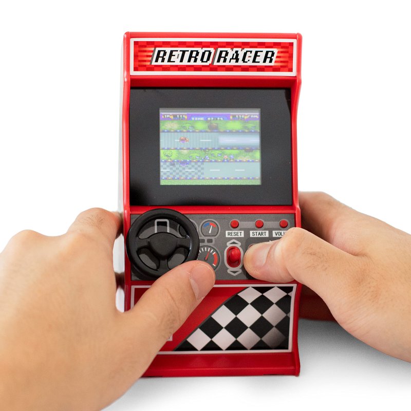 - 🕹 Relive the classic 80's racing games in this mini handheld retro arcade racing games machine that can be played handheld or on a table.