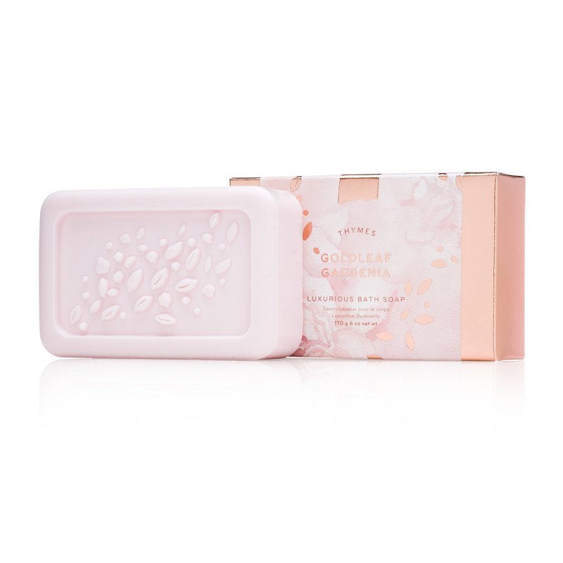 Thymes - Goldleaf Gardenia Luxurious Bath Soap - Naturally Conditioning Light Floral Scented Bar Soap - 6 ounce