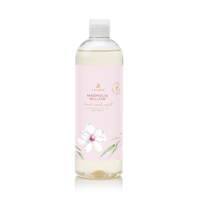 - NOURISHNG HAND SOAP REFILLS: This Hand Wash Refill is filled with the same beloved formula of nourishing ingredients that gently cleanses while leaving hand lightly scented with the feminine and sweet fragrance of Magnolia Willow. Always keep this liquid hand soap on hand, follow with our moisturizing Magnolia Willow Thymes hand cream.