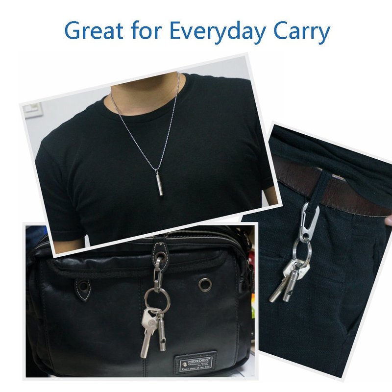 - PERFECT SIZE: Length: 1.55”, Outer diameter: 0.31”, Weight: 0.17oz. Highly portable and fit perfectly on your keychain, necklace or backpack. Great for every day carry.