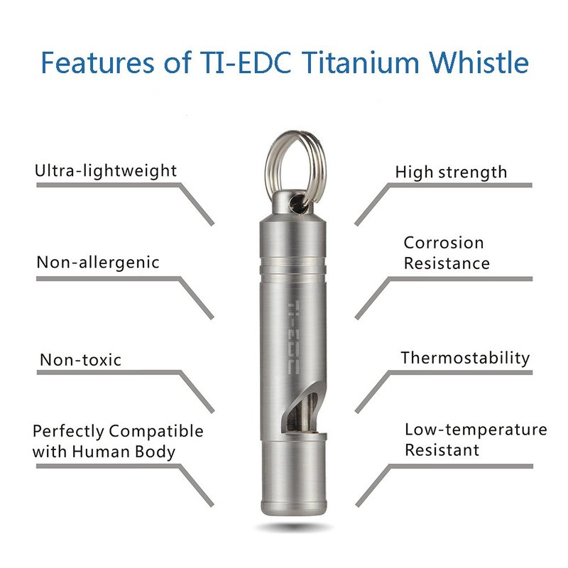 This TI-EDC Titanium Emergency whistle is made from ultra lightweight and strength of titanium and well polished with aesthetic appearance. It's waterproof and works in both dry and wet conditions. You can have it on your keychain or hang around your neck as a pendant. Essential tool for camping, boating, fishing, hiking and other outdoor activities.