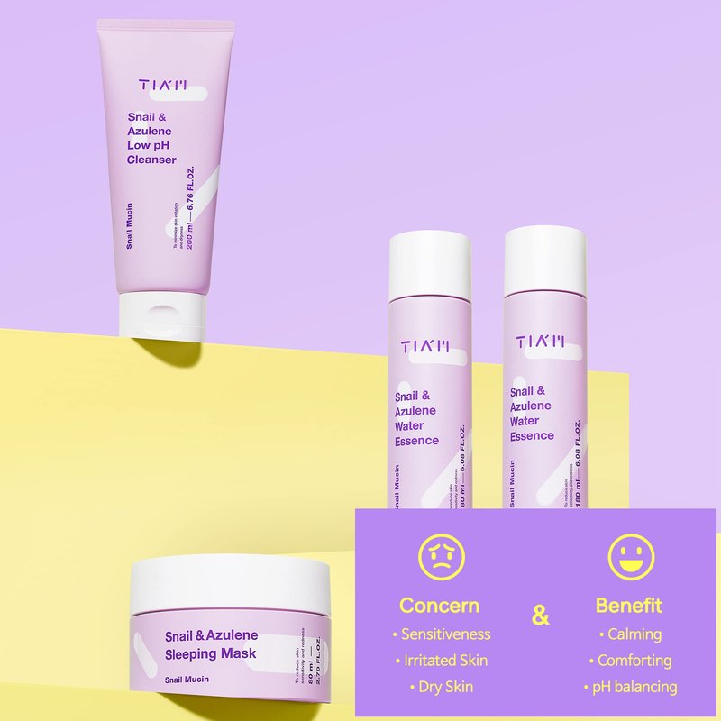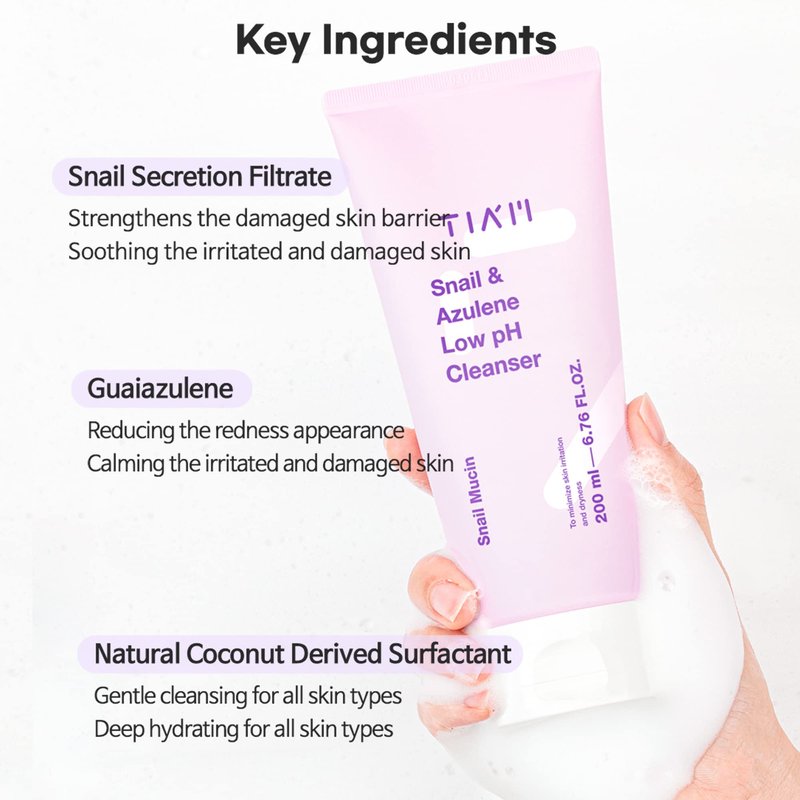 TIA'M TIAM Snail&Azulene Low pH Cleanser, Gel Facial Cleanser, Snail Secretion Filtrate, pH Balancing, Anti Acne, Breakouts Treatment, Sensitive Skin, 6.76 Fl.Oz