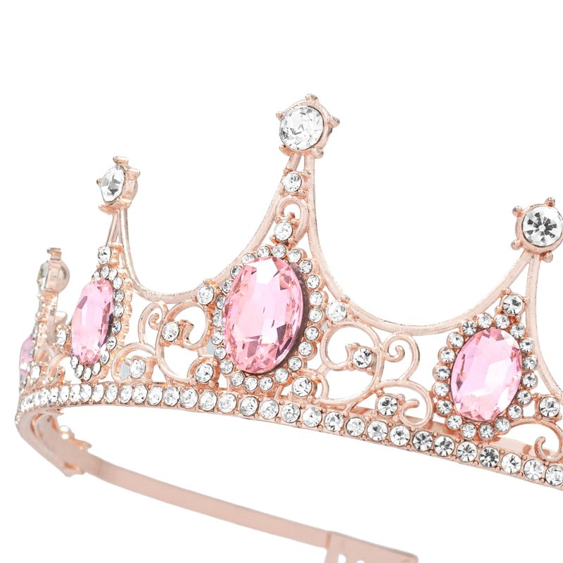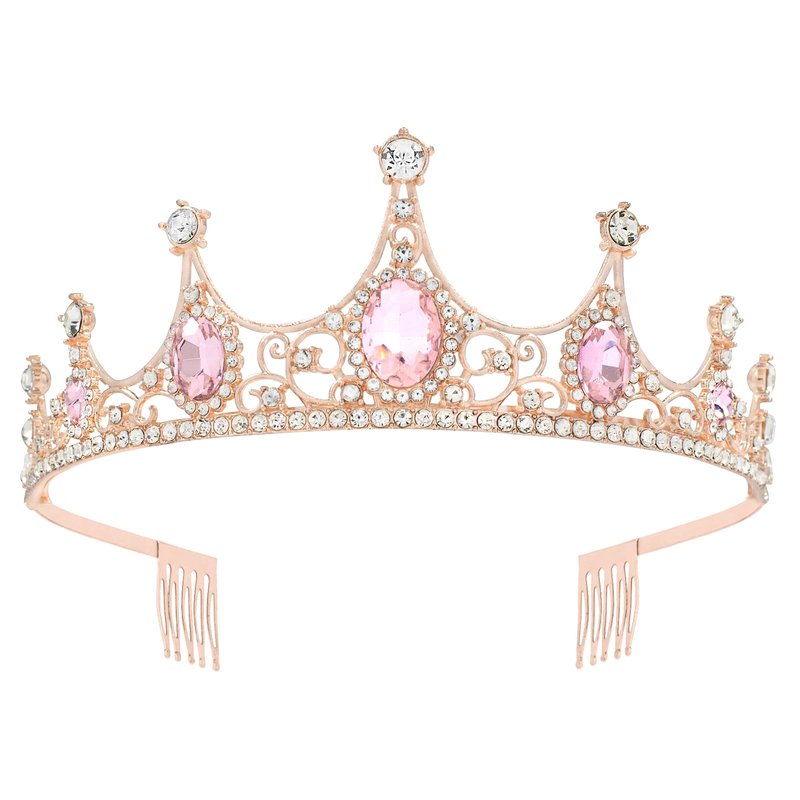 Tiaras for Women, Fufuddz Pink Crystal Crowns Rose Gold Crown Baroque Tiara with Combs Princess Queen Bride Wedding Pageant Prom Birthday Cosplay Hair Accessories Halloween Costumes Headband