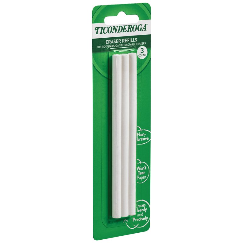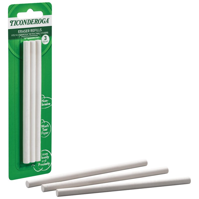 Ticonderoga Retractable Eraser Refills, White, 3 Count, 6 Packs (X38003)