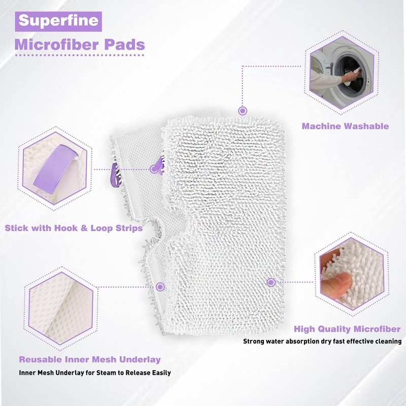 - ✔【Top Material】Made with Top Quality Microfiber(80% Polyester/20% Polyamide),Strong water absorption, dry fast, effective cleaning. Washable and reusable steam pocket mop pad for daily use.