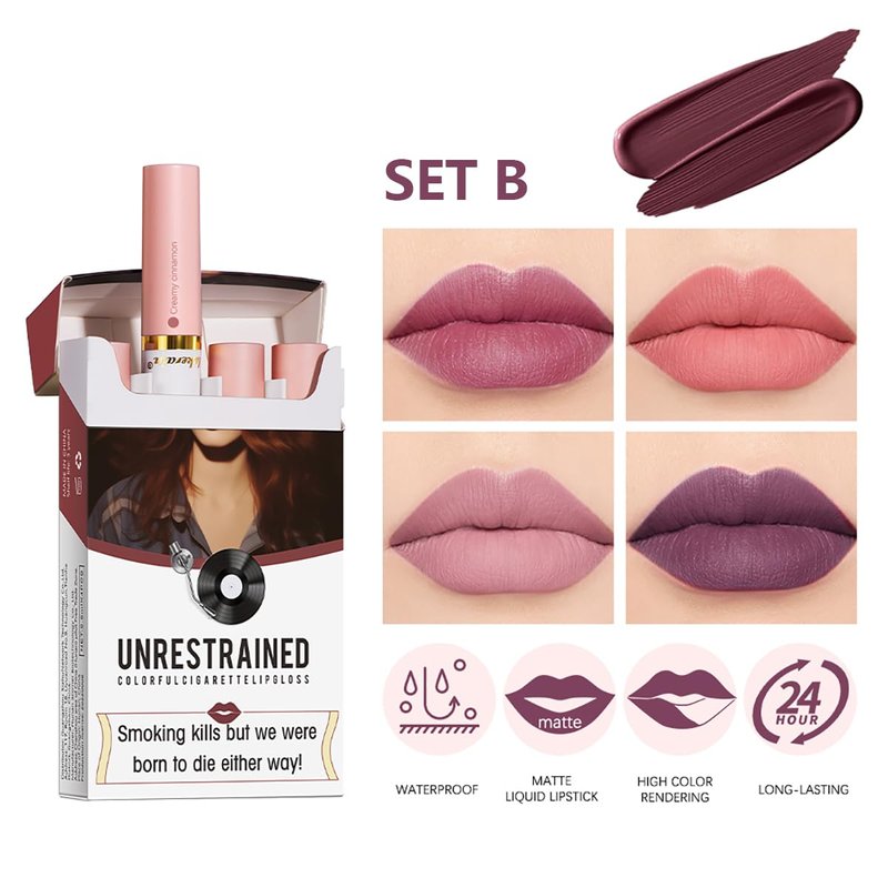 - 💄【Long-lasting and Waterproof】Lipstick Cigarettes set makes you look great all day long, These are waterproof long lasting matte lip gloss lipstick. Non-Stick cup, also without fading. The color will continue to be maintained, no need to check and reapply frequently.