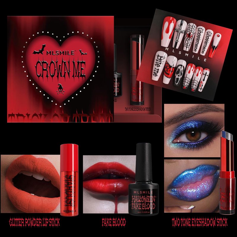 - Versatile Makeup Set: This all-in-one kit includes essential makeup items like a Press-on nails, fakeblood, two-tone eyeshadow, and lip powder for creating bold, edgy looks.
