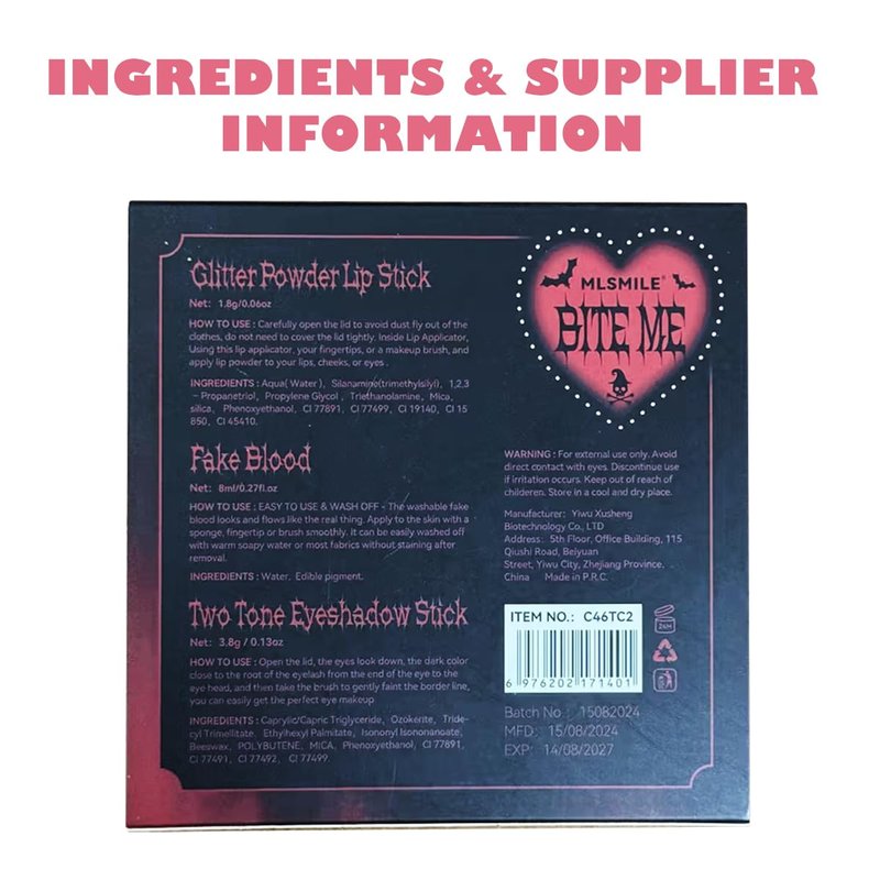 Unleash your dark side with this mesmerizing makeup set that lets you create a captivating, otherworldly look. The faux blood gel adds a haunting touch to your complexion, while the lip powder gives your pout an intense, matte crimson hue. The two-tone eyeshadow palette offers a range of smoky, sultry shades to intensify your gaze. Complete the gothic glam with the nail slice for intricate, edgy nail art designs. This set is perfect for Halloween or any occasion where you want to channel your inner vamp. Indulge in the allure of the unknown and embrace the thrill of standing out from the crowd.