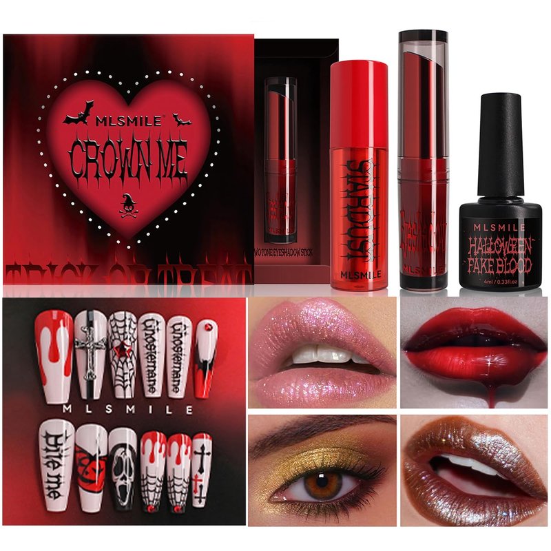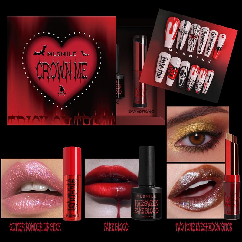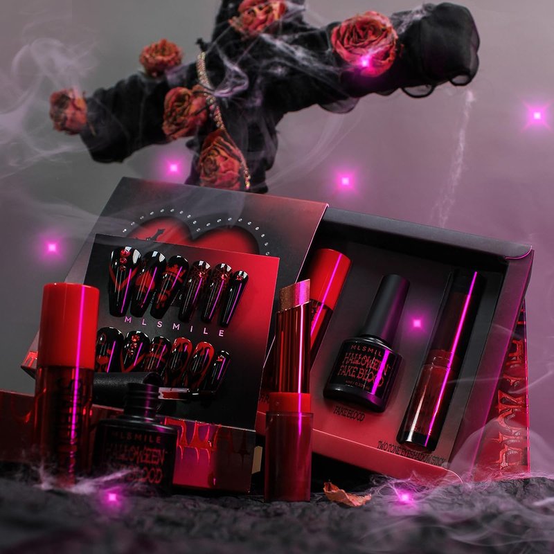 Unleash your dark side with this mesmerizing makeup set that lets you create a captivating, otherworldly look. The faux blood gel adds a haunting touch to your complexion, while the lip powder gives your pout an intense, matte crimson hue. The two-tone eyeshadow palette offers a range of smoky, sultry shades to intensify your gaze. Complete the gothic glam with the nail slice for intricate, edgy nail art designs. This set is perfect for Halloween or any occasion where you want to channel your inner vamp. Indulge in the allure of the unknown and embrace the thrill of standing out from the crowd.