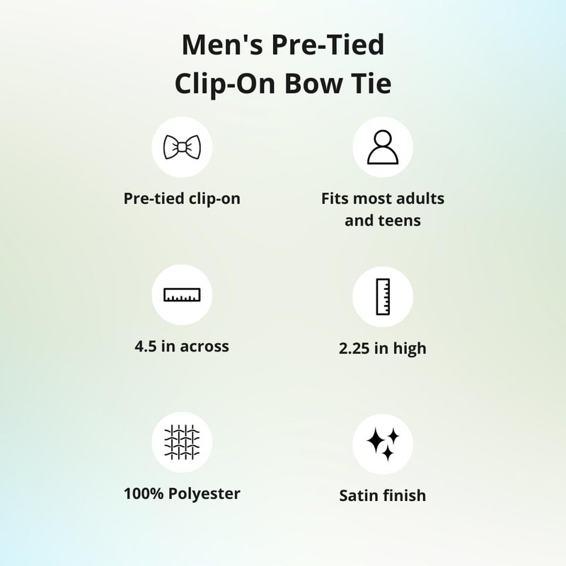 Wear a perfect bow every time with this clip-on bow tie. This pre-tied bow tie features a heavyweight clip that discretely attaches to either side of your shirt collar material for a secure fit. One size fits all, regardless of neck size. To secure your clip-on bow tie the shirt collar must be placed between the bow tie fabric and the metal clip (not between the double metal clip). With the clip facing you, place your forefingers on the front of the bow and your thumbs on either side of the metal clip (you'll feel the ends of the metal clip under the fabric). Gently press your thumbs forward to open the bow. Place your shirt collar between the bow tie fabric and the metal clip and snap the bow tie closed to secure.